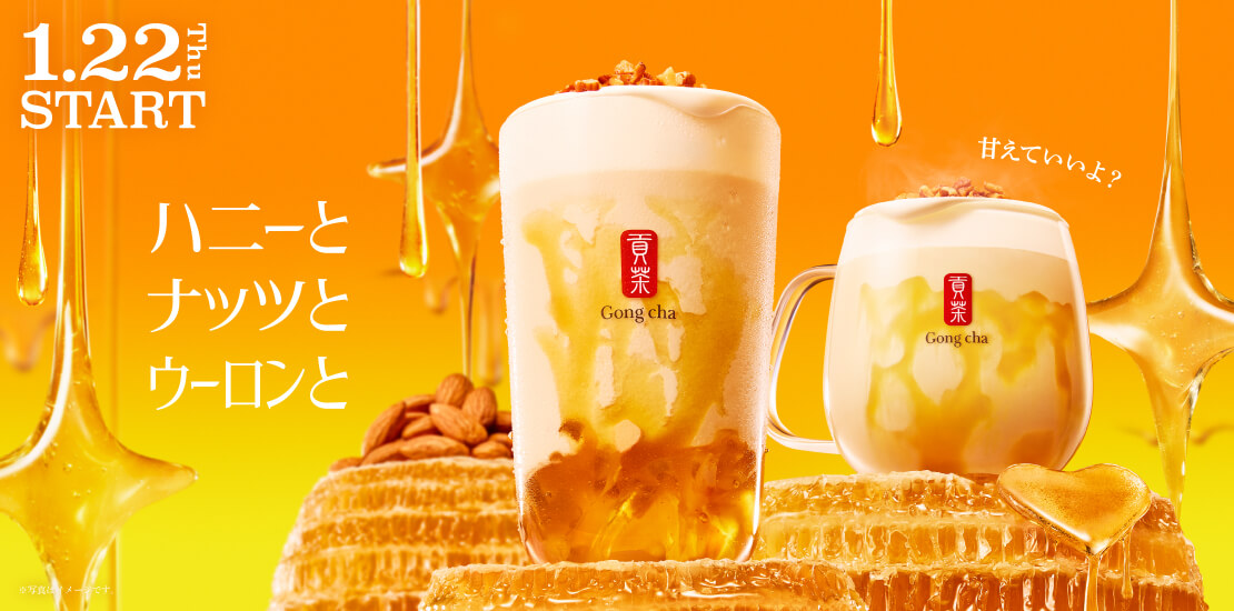 甘えていいよ?ゴンチャが贈る冬のごほうび「ハニーナッツウーロン ミルクティー/アーモンドミルクティー」「香り立つ ハニーナッツウーロン ミルクティー/アーモンドミルクティー」1月22日(木)〜期間限定で登場