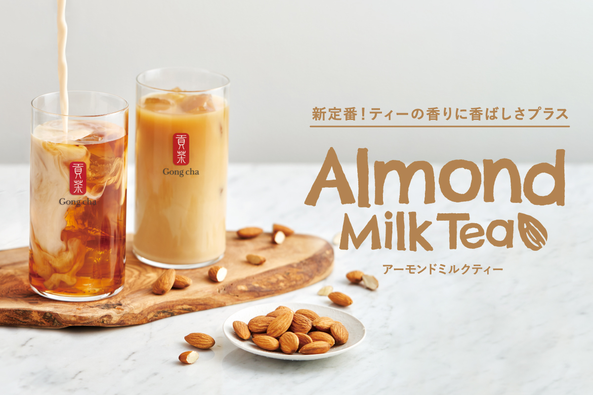 香ばしい香りと豊かな風味が、ティーのおいしさをより一層引き立てるアーモンドミルク。ストレートティー、ミルクティーに次ぐ第三の楽しみ方として、ゴンチャの「新定番」となること間違いなし。