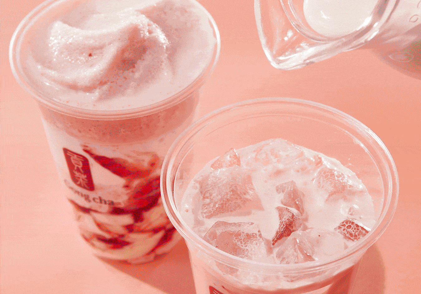 デザート感溢れる春色のドリンクに合わせた、とろぷる食感の杏仁豆腐も