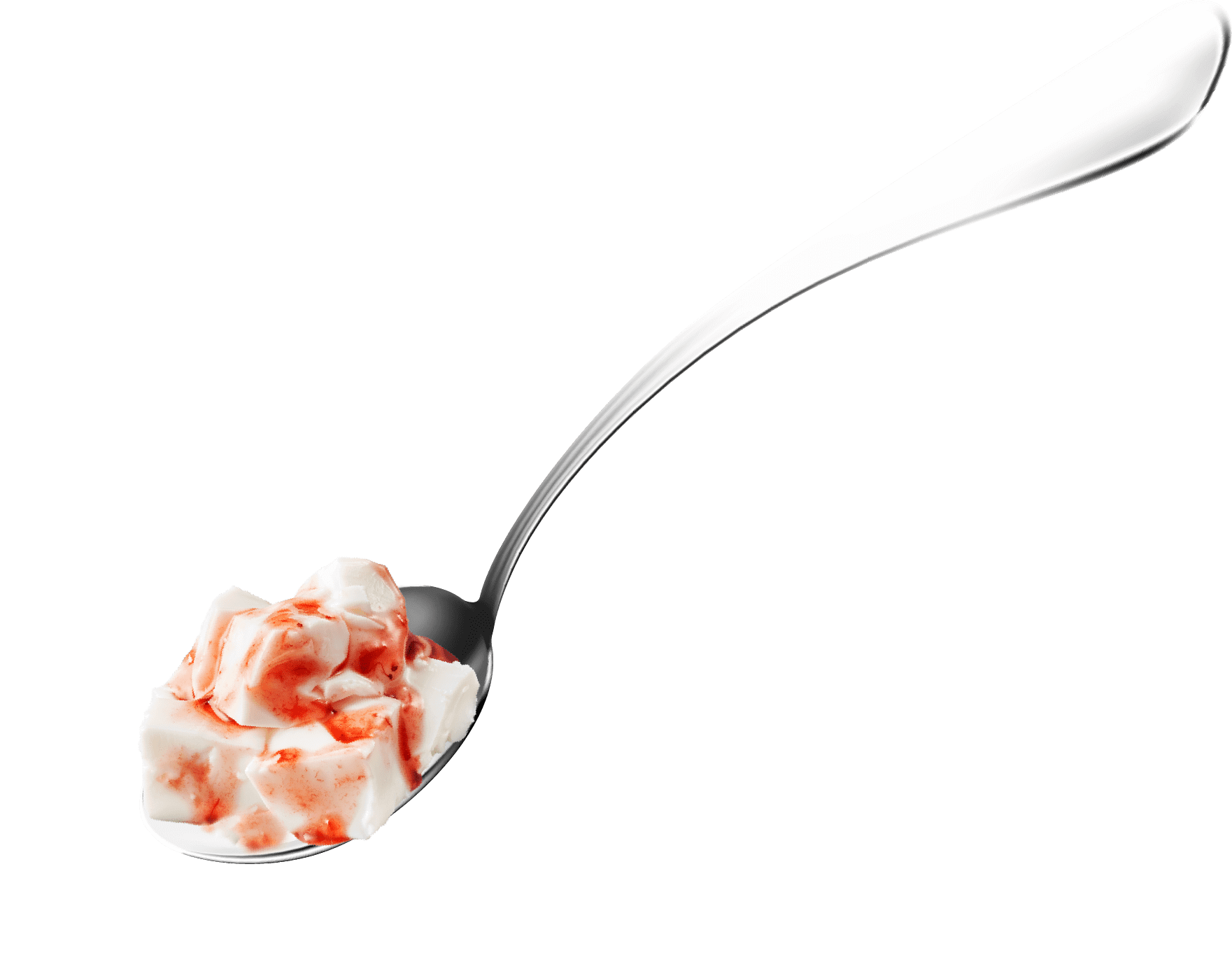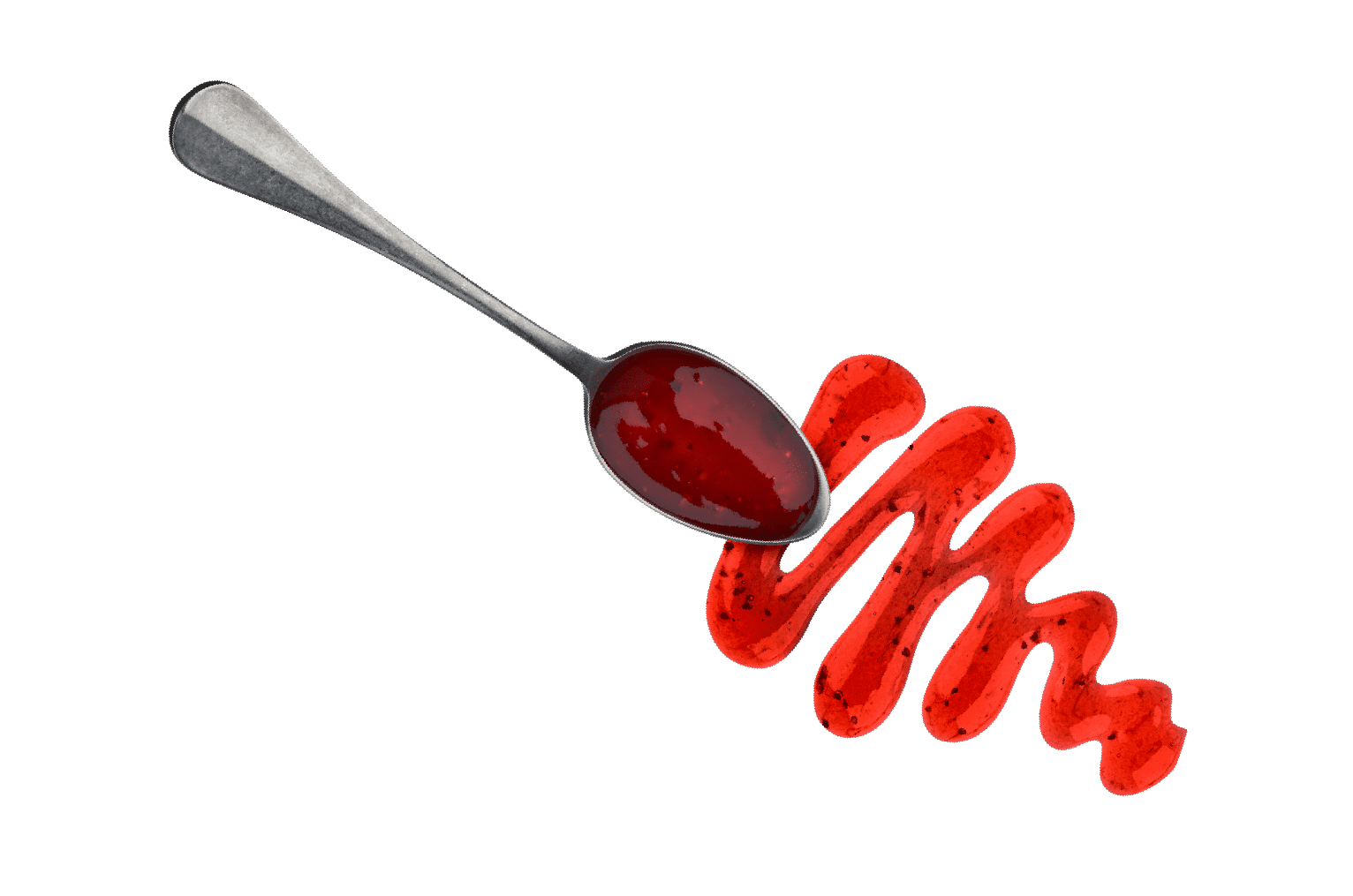 果肉たっぷりの真っ赤なストロベリーソースに、