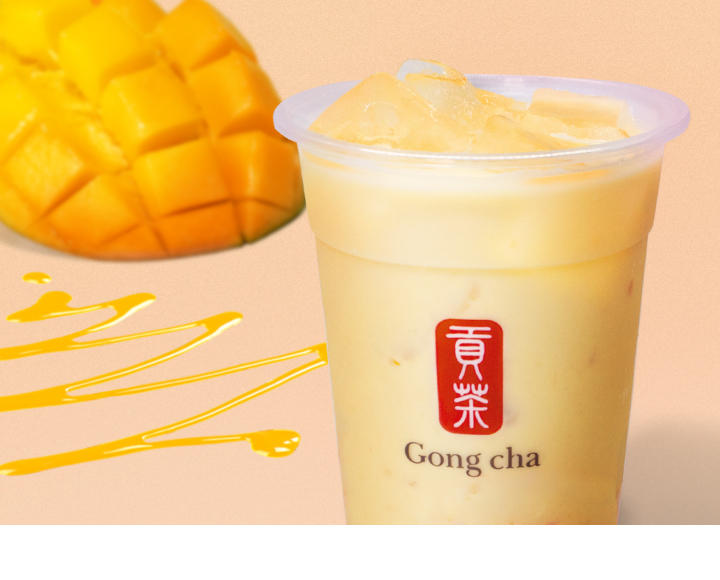 ゴンチャの定番、大人気の果肉入りマンゴーソースとぷるぷる食感のピーチジュレを贅沢に使用したミルクティー。