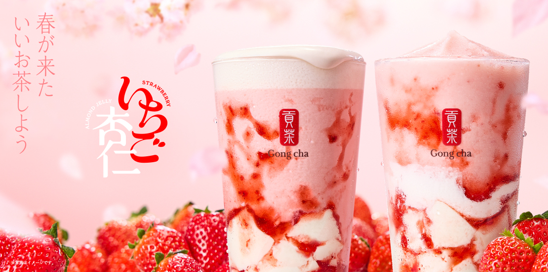甘酸っぱいストロベリーソース、“とろぷる”食感のいちご杏仁、フルーティーで花のような香りの阿里山ウーロンティーを合わせた、見た目も味わいも華やかな、春満開のミルクティー。まるで飲むデザートのようなリッチなおいしさをご堪能ください。